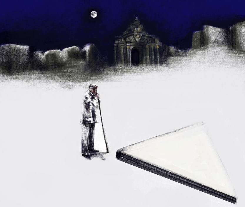i fogli di un indifeso quadernaccio, bianco su bianco, il niente sul nulla. Sul palcoscenico dei pensieri idioti il riflettore che la penna insegue non è il lume dei poeti memorabili ma un fuoco fatuo che mi tenta come l’acqua salata i naufraghi smaniosi di morire.