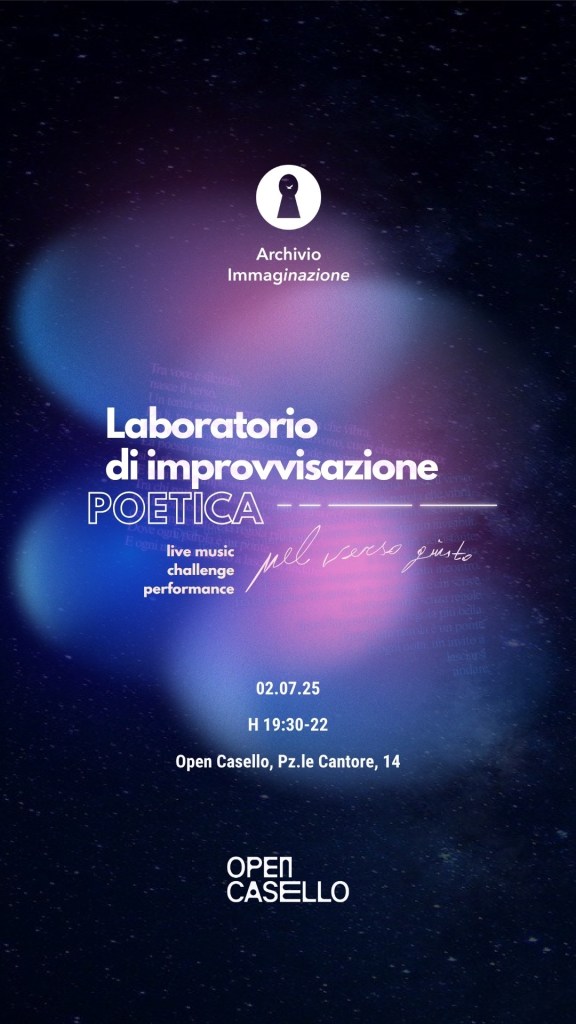 Laboratorio di improvvisazione poetica è un evento pensato per scrittori e musicisti emergenti durante il quale si sceglierà un tema (o una parola chiave) su cui scrivere, improvvisando versi liberi. Si stimolerà la collaborazione tra i partecipanti e ci sarà un momento finale di lettura e confronto (con sottofondo musicale). I musicisti, un cantante e un chitarrista, si uniranno all’improvvisazione musicando i testi appena composti, per creare un clima di contaminazione e collaborazione spontanea, anche attraverso l’incontro tra parole e musica.